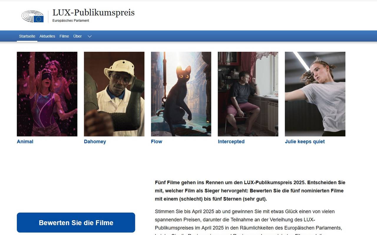 Noch bis April können alle Europäerinnen und Europäer online für ihren Lieblingsfilm abstimmen. Der Gewinner wird bei der Preisverleihung im Europäischen Parlament am 29. April 2025 in Brüssel bekannt gegeben.