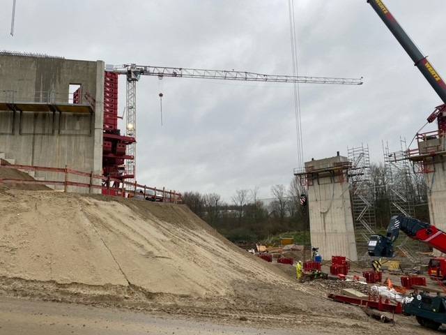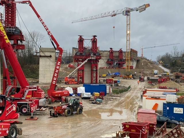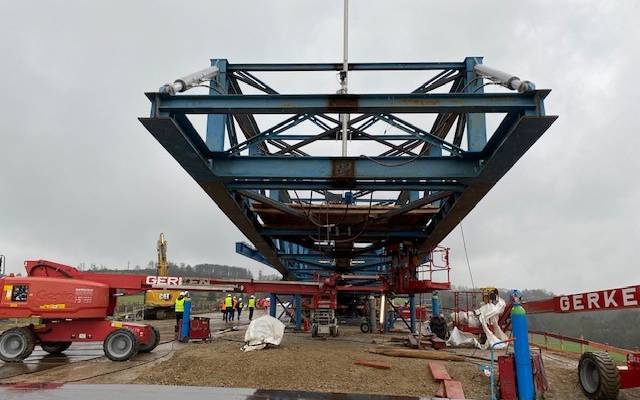 Am Mittwoch und am Dienstag kommender Woche (11. und 17.12.2024) werden jetzt im Aachener Haarbachtal die Elemente der neuen Brücke über die A544 ineinander geschoben.