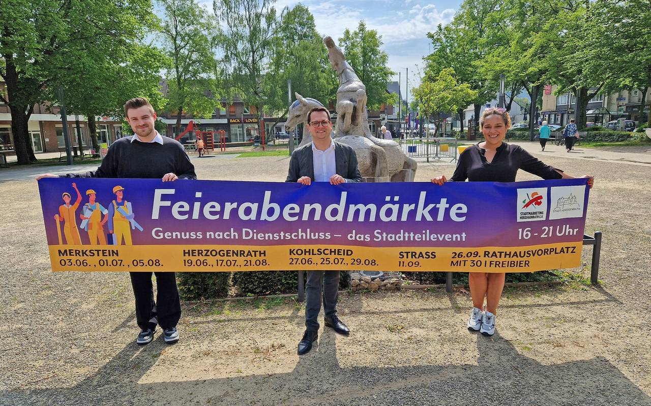 Und auch den Zusatzveranstaltungen fiebert man in Herzogenrath schon entgegen: „Eine solche Veranstaltung wie beim kommenden Abschlussevent hat es auf unserem Rathausplatz noch nie gegeben. Daher hoffen wir darauf, dass wir wie im vorigen Jahr wieder an allen Abenden viel Glück mit dem Wetter haben und sich die Feierabendmärkte erneut hunderte Besucherinnen und Besucher anlocken werden – auch über die jeweiligen Stadtteilgrenzen hinweg“, sagt Bürgermeister Benjamin Fadavian.